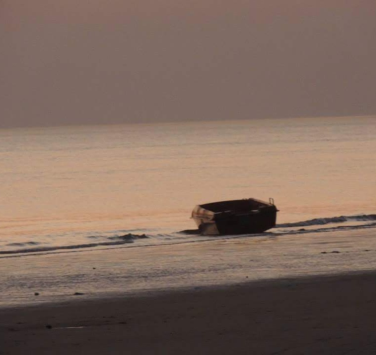 The sun setting quietly behind the watch towers on Ghogla Beach